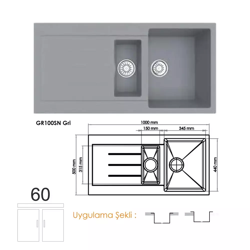 Gradde Quartz Mutfak Evyesi, Tezgaha Sıfıs ve Tezgah Üstü Kullanımına Uygundur.